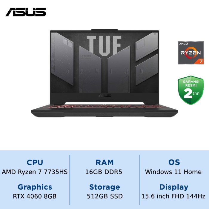 Jadilah yang pertama memberikan ulasan “ASUS TUF Gaming A15 FA507NV-R746KLM-O (AMD Ryzen 7, 16GB, 512GB, RTX 4060)” Batalkan balasan